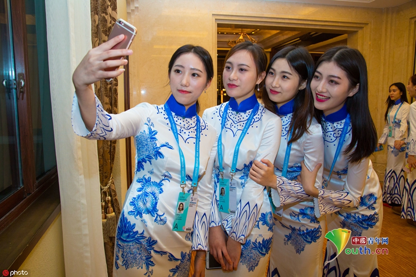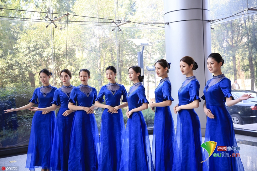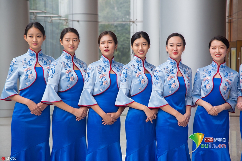 图为第一届世界互联网大会礼仪制服“青花瓷”