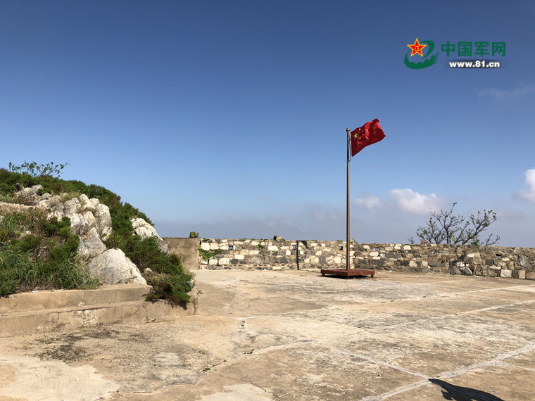 开山岛上飘扬的五星红旗。中国军网记者牛晨斐摄