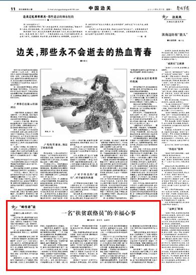 吃过早饭,第76集团军某旅“扶贫工作队”官兵,沿着蜿蜒小路朝泾河村走来。刚到村头,村委副书记丁志国、贫困户杨志贵就迎了上来。“家里的羊,前几天产了三只羊羔。”杨志贵一脸幸福笑容…… 这一切,该旅扶贫联络员、上士刘继扬看在眼里、甜在心上。他笑得很开心。请关注出版的《解放军报》的详细报道——