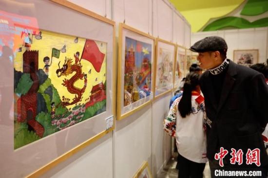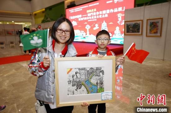 来自澳门濠江中学附属英才学校的9岁少年陈天泽,此前参与了在西安举办的同主题活动,此次他带来一幅名为《中国梦》的作品,描绘粤港澳大湾区发展景象;澳门培华中学附属小学美术教师段冠花此次带领3名学生参展,她说,通过参加活动,学生不仅可以提高美术水平,更可走访内地,切身了解中华文化,感受祖国发展。