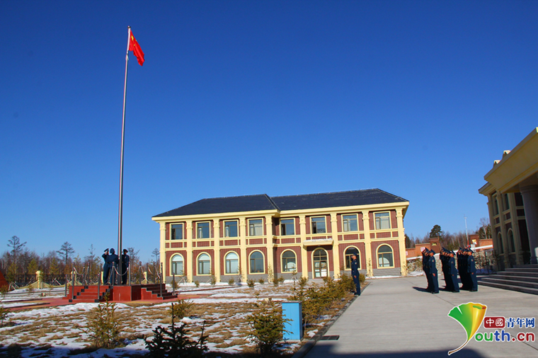 空军漠河雷达站举行升旗仪式。空军漠河雷达站供图