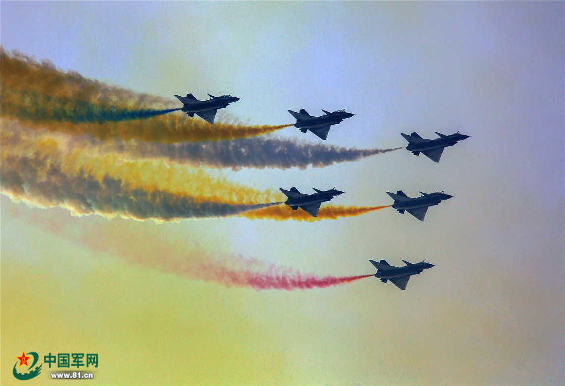 10月20日上午,空军八一飞行表演队在华北某机场举行航空开放日活动。活动现场,飞行员驾驶歼-10表演机先后进行了单机、四机和六机等特技飞行表演,为万余名群众献上一场精彩视觉盛宴。