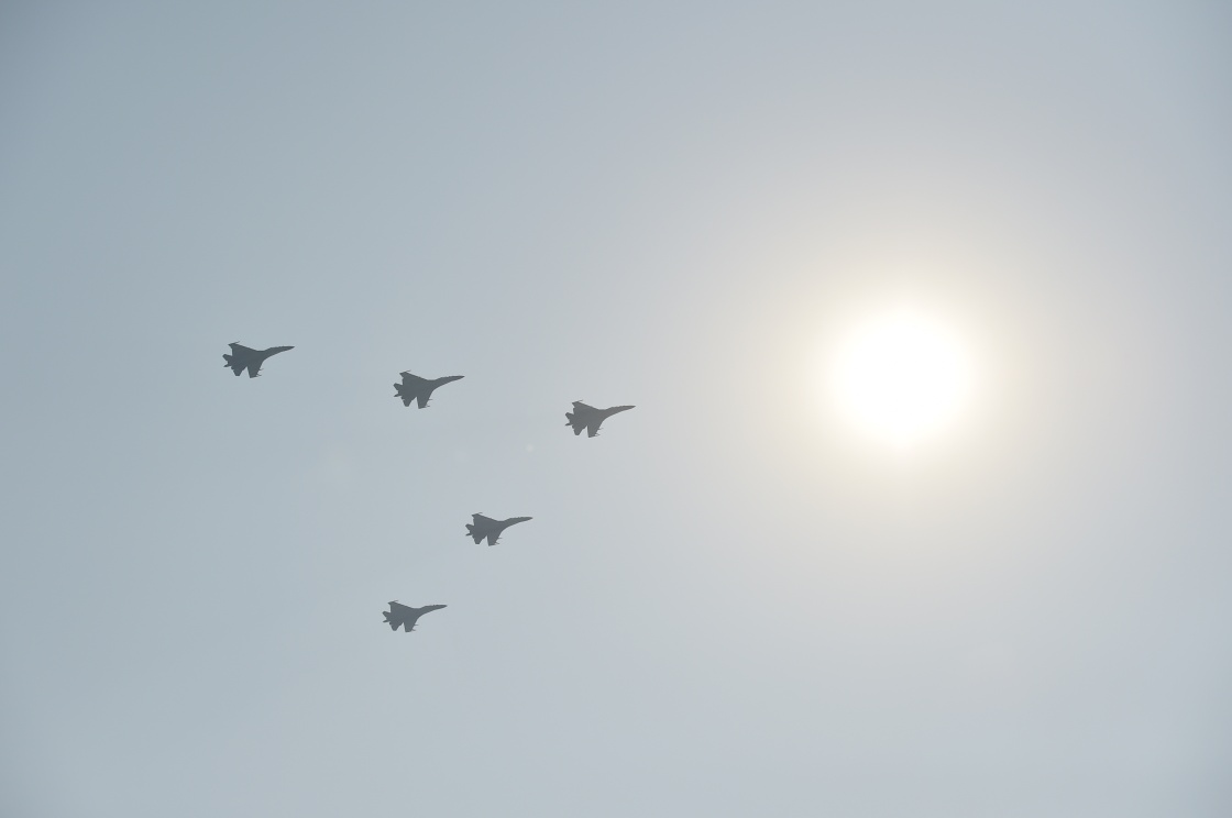 梯队领衔的是我国自主研发的新一代隐身战斗机歼-20。2017年的沙场阅兵中,歼-20三机编队以战斗姿态接受检阅。近年来,歼-20从研发、试训到列装作战部队形成战斗力,再到实战实训、展翅海空,见证了我国航空工业和人民空军战斗力的飞速发展。