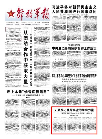 在全党开展“不忘初心、牢记使命”主题教育,是以习近平同志为核心的党中央统揽伟大斗争、伟大工程、伟大事业、伟大梦想作出的重大部署。在军队开展主题教育,是进一步深化习近平新时代中国特色社会主义思想和习近平强军思想武装的战略举措,是全面加强新时代军队党的领导和党的建设工作的接续发力,是弘扬优良传统作风、永葆我军性质宗旨本色的内在要求,是激发担当作为、奋力推进强军事业的全面动员。请关注今日《解放军报》的报道——