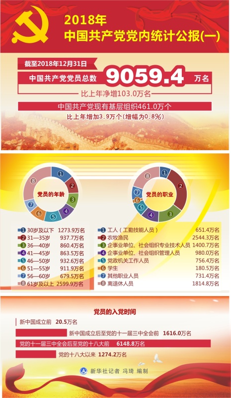 图表:2018年中国共产党党内统计公报。新华社记者 冯琦 编制
