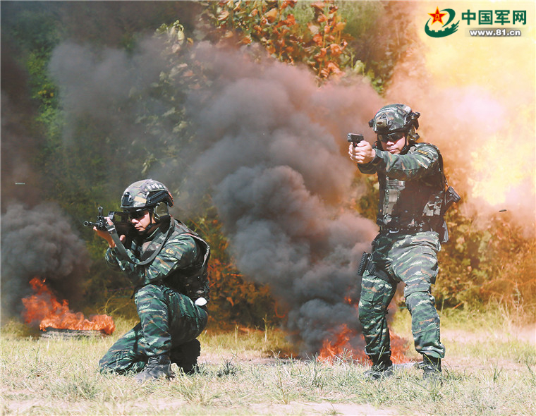 鲁宪甫(右一)带领官兵进行抵近射击训练。