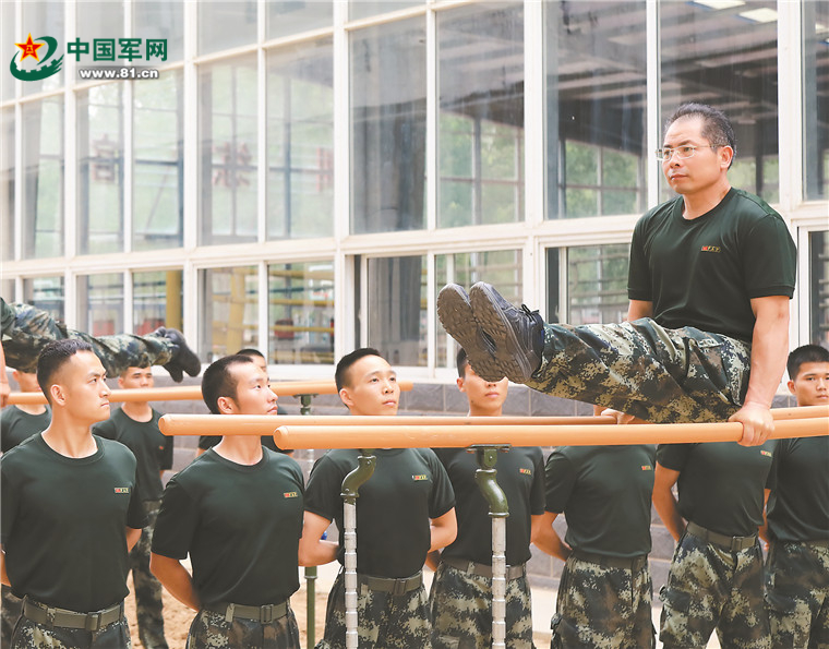 有段时间,他发现特战队一些官兵训练虽然刻苦,射击成绩却上不去,于是主动当起“武教头”。通过科学施教,他带领官兵摸索出一套有效的训练方法,特战队整体射击水平得到提升,队员刘付鸿锋参加第二届“锋刃”国际狙击手射击竞赛,夺得个人狙击第一名。