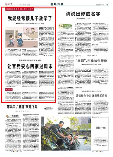 今年5月1日新条令施行,明确配偶在驻地长期工作或者生活的,在休息日和节假日可以按照统一安排轮流回家住宿。南海舰队某作战支援舰支队在严格贯彻新条令的基础上,合理制订轮休计划、调配值班人员,切实打通回家的“最后一公里”。详情请关注今天出版的《解放军报》带来的报道——