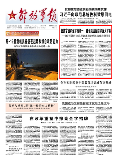 在庆祝改革开放40周年大会上,习主席高度评价了人民军队走过的光辉历程,充分肯定了人民军队建立的丰功伟绩、取得的丰硕成果。40年来,人民军队在党的绝对领导下,圆满完成党和人民赋予的各项使命任务,革命化、现代化、正规化建设全面加强,维护国家主权、安全、发展利益的能力显著增强,威武之师、文明之师、和平之师的良好形象得到充分展现,成为保卫人民幸福生活、保卫祖国和世界和平牢不可破的强大力量。特别是党的十八大以来,人民军队全面贯彻习近平强军思想,重振政治纲纪、重塑组织形态、重整斗争格局、重构建设布局、重树作风形象,实现了体制一新、结构一新、格局一新、面貌一新,在中国特色强军之路上迈出坚定步伐。