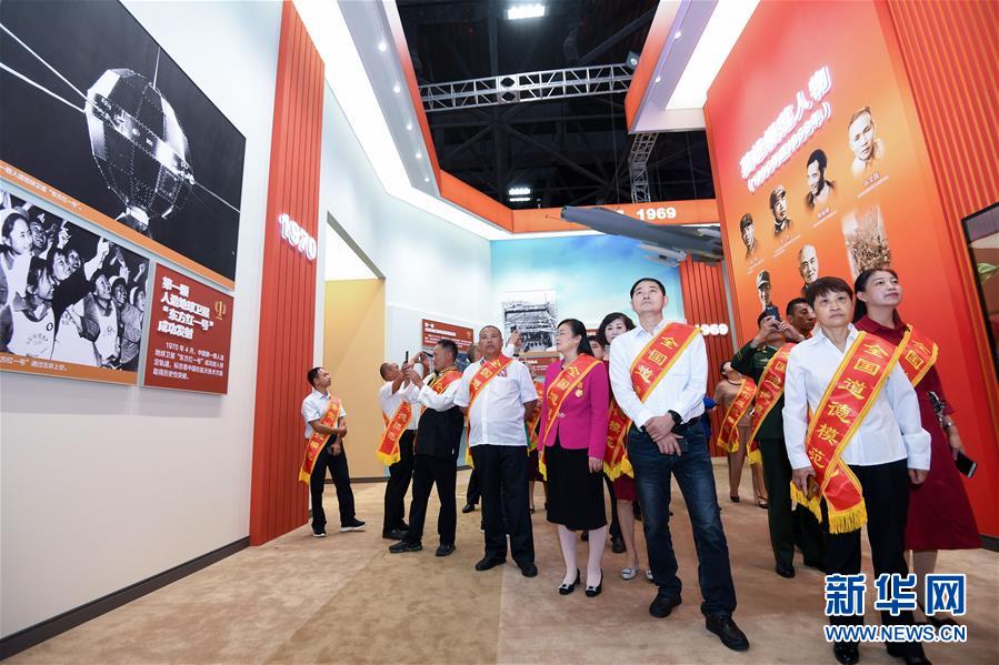9月24日,英雄模范和先进典型代表在参观成就展。 当日是“伟大历程 辉煌成就——庆祝中华人民共和国成立70周年大型成就展”向公众开放的第一天。中宣部邀请200余位英雄模范和先进典型,包括时代楷模、双百人物、全国道德模范、最美人物、中国好人、文化名家等参观展览。 新华社记者 陈晔华 摄