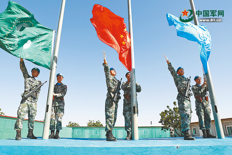 授勋仪式在当日上午举行,联合国和非洲联盟驻达尔富尔特派团(联非达团)特别代表玛玛波罗、各出兵国指挥官、华侨华人代表等300余人出席了仪式。中国“蓝盔勇士”组成的3支阅兵方队英姿勃发、精神抖擞,展现出中国军人的良好风貌。