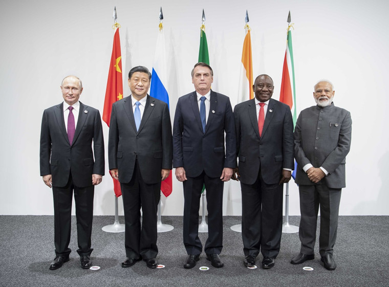 6月28日,金砖国家领导人会晤在大阪举行。国家主席习近平、巴西总统博索纳罗、俄罗斯总统普京、印度总理莫迪、南非总统拉马福萨出席。新华社记者 李涛 摄