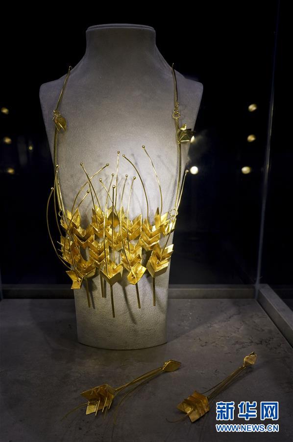 这是11月6日在第二届进博会希腊国家馆内拍摄的饰品。 爱琴海岸,古希腊文明跨越千年,成为孕育欧洲文明的摇篮。而在亚欧大陆的另一端,中华文明绵延传承,成为东方文明的杰出代表。同为文明古国,中希友好交往源远流长,两国民众有着天然的亲近感。在正在上海举行的第二届中国国际进口博览会上,希腊作为主宾国参展,展示了其文化、旅游、航运、食品等领域的产品。 新华社记者 殷刚 摄