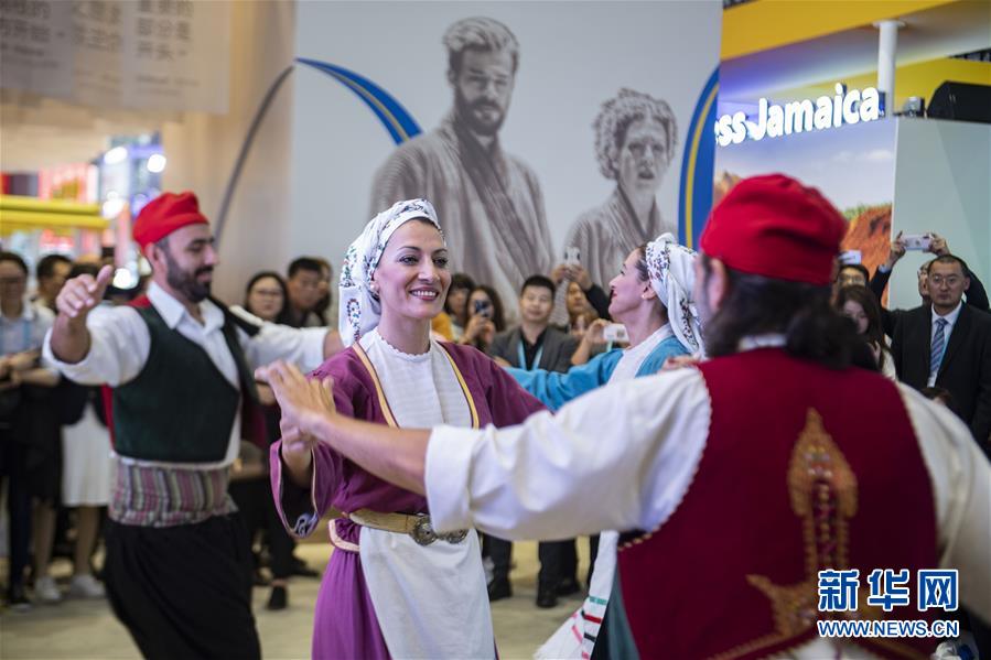11月7日,表演者在第二届进博会希腊国家馆展示舞蹈。 爱琴海岸,古希腊文明跨越千年,成为孕育欧洲文明的摇篮。而在亚欧大陆的另一端,中华文明绵延传承,成为东方文明的杰出代表。同为文明古国,中希友好交往源远流长,两国民众有着天然的亲近感。在正在上海举行的第二届中国国际进口博览会上,希腊作为主宾国参展,展示了其文化、旅游、航运、食品等领域的产品。 新华社记者 普布扎西 摄