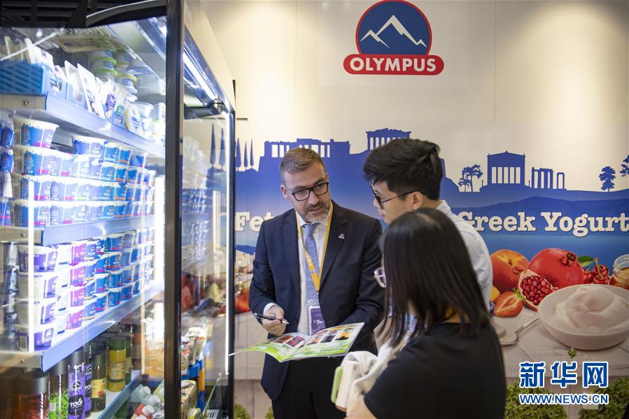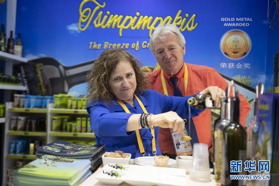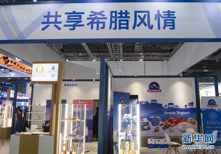 这是11月7日拍摄的第二届进博会希腊国家馆一角。 爱琴海岸,古希腊文明跨越千年,成为孕育欧洲文明的摇篮。而在亚欧大陆的另一端,中华文明绵延传承,成为东方文明的杰出代表。同为文明古国,中希友好交往源远流长,两国民众有着天然的亲近感。在正在上海举行的第二届中国国际进口博览会上,希腊作为主宾国参展,展示了其文化、旅游、航运、食品等领域的产品。 新华社记者 普布扎西 摄