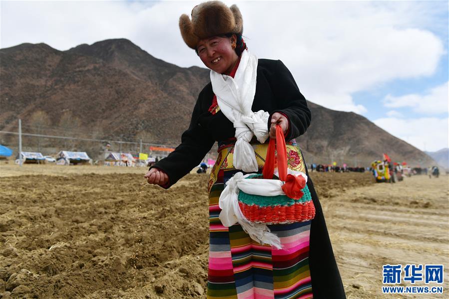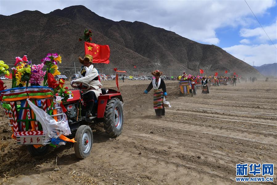 当日,西藏各地男女老幼身着节日盛装,驾着一辆辆由彩旗、花朵装扮一新的拖拉机,涌向待垦的农田,载歌载舞迎来一年一度的开耕仪式。