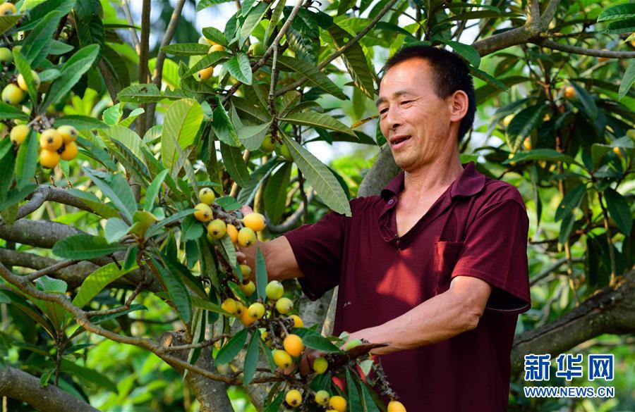 沙洲村村民朱和勇给自家的枇杷树剪枝(4月22日摄)。 新华社记者 范军威 摄