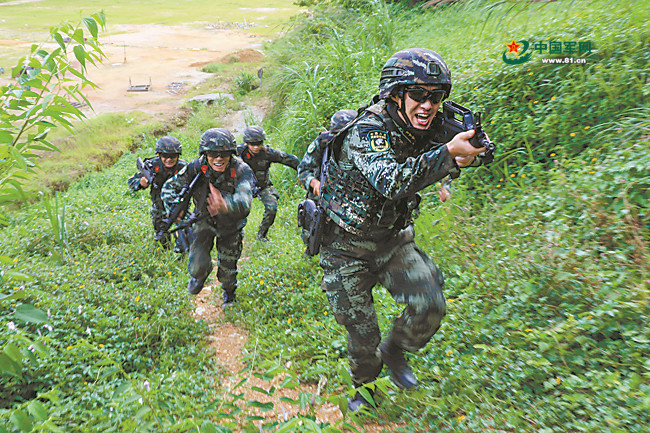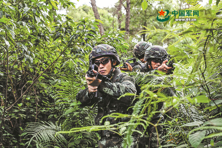 陈玉浩带队进行山地搜捕训练。