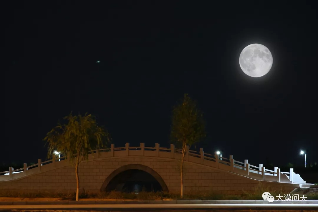 平分秋色一轮满,长伴云衢千里明。(《中秋》(唐)李朴 )。酒泉卫星发射中心地处祖国西北戈壁大漠,属内陆及沙漠性气候,常年干燥少雨,春秋两季较短,冬夏两季较长,一年四季多晴天,云量小,无霜期长,日照时间长,可为航天发射提供良好的自然环境条件。大漠孤烟直,长河落日圆。(《使至塞上》(唐)王维)。太阳如此,月亮亦如此。东风的月,大、圆、明、净,在天气晴好的秋日,空旷的大漠上圆月升起,皎洁的月光静静地洒在航天城的各个角落,满月与飞天交相辉映,构成了一道独属东风的秋夜美景。