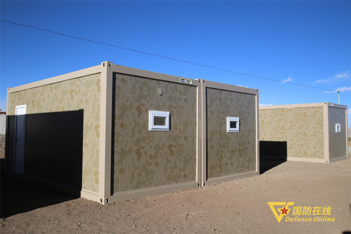 “以前半夜起来站岗,站完岗回来整夜都睡不热。现在不一样了,站完岗回来屋里暖暖的,多亏了我们的新式板房。”战士李煜说。