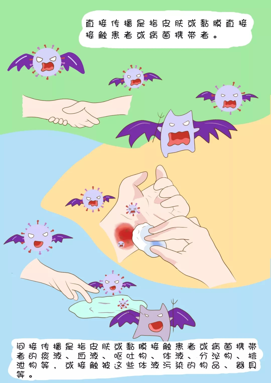间接传播是指皮肤或黏膜接触患者或病菌携带者的痰液、血液、呕吐物、体液、分泌物、排泄物等,或接触被这些体液污染的物品、器具等。