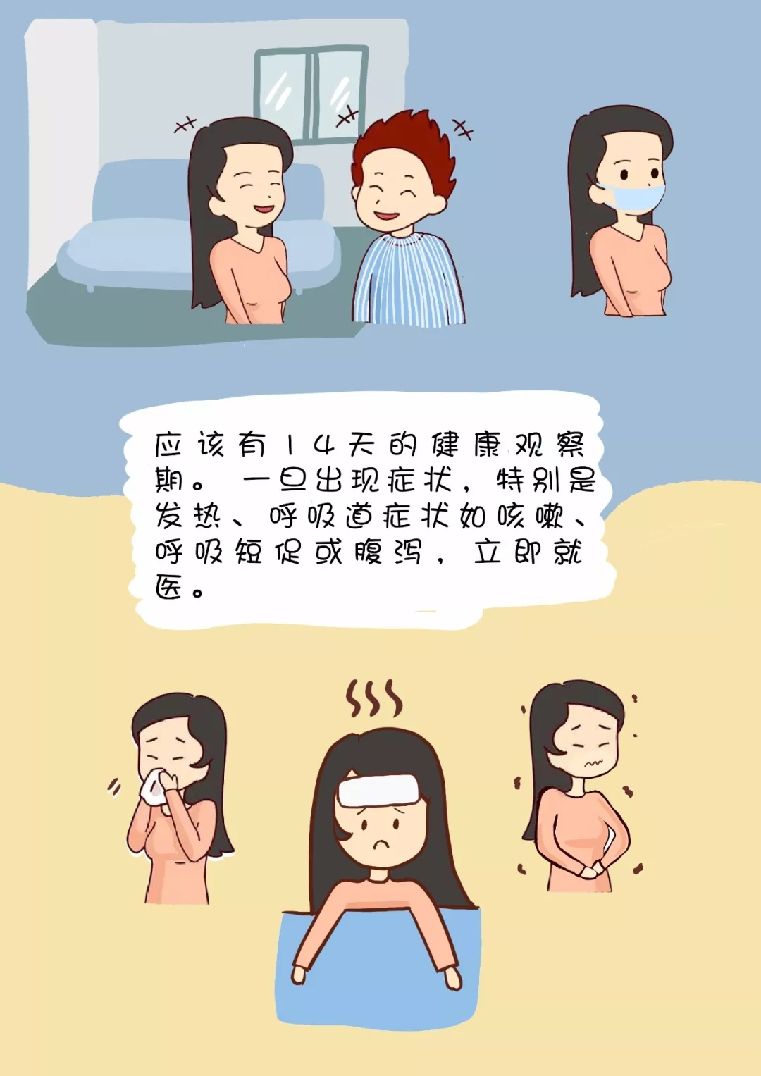 一旦出现症状,特别是发热、呼吸道症状如咳嗽、呼吸短促或腹泻,立即就医。