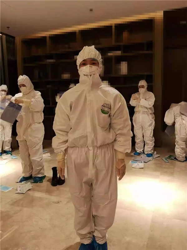 何娟穿戴好防护服。