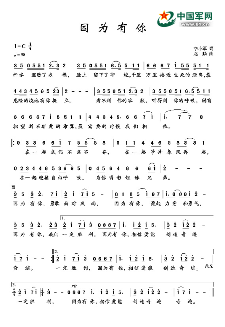 “因为有你,勇敢面对风雨;因为有你,聚起力量和勇气;因为有你,相信爱能创造奇迹”,一首《因为有你》,向所有抗击疫情作出贡献的英雄们致敬!