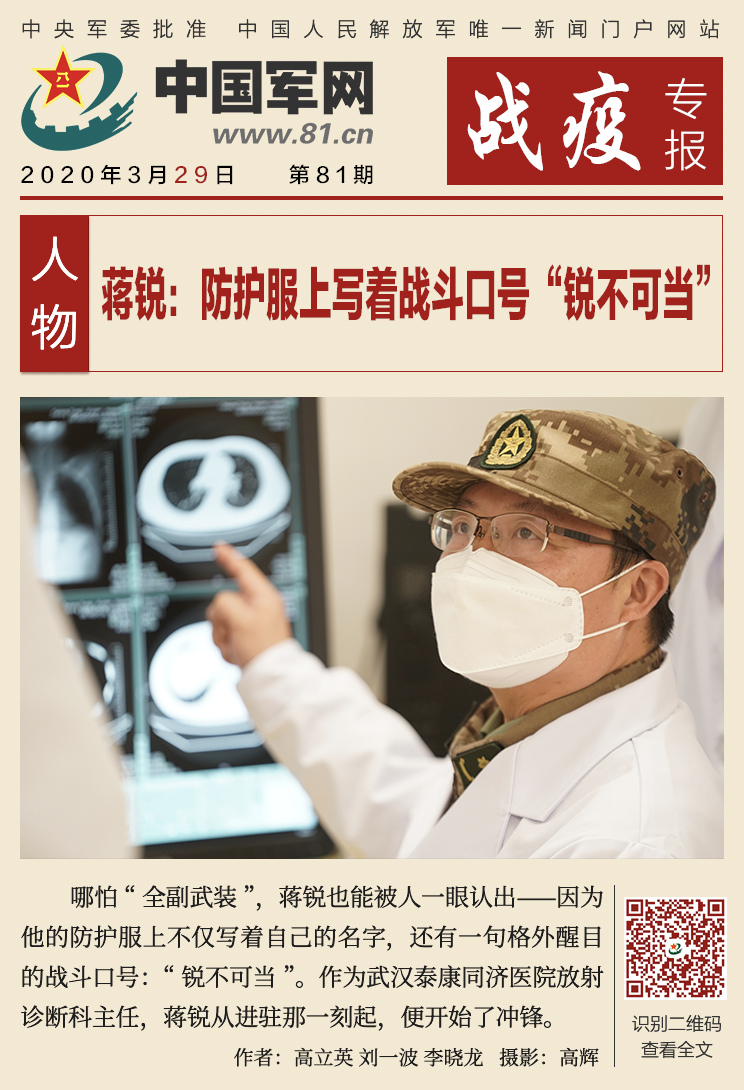 中国军网战疫专报|蒋锐:防护服上写着战斗口号“锐不可当”