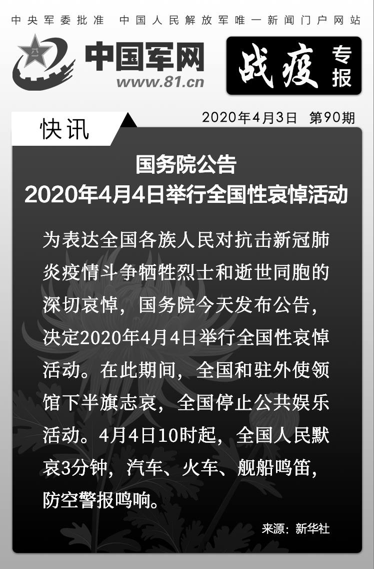 中国军网战疫专报|4月4日全国哀悼抗疫牺牲烈士和逝世同胞