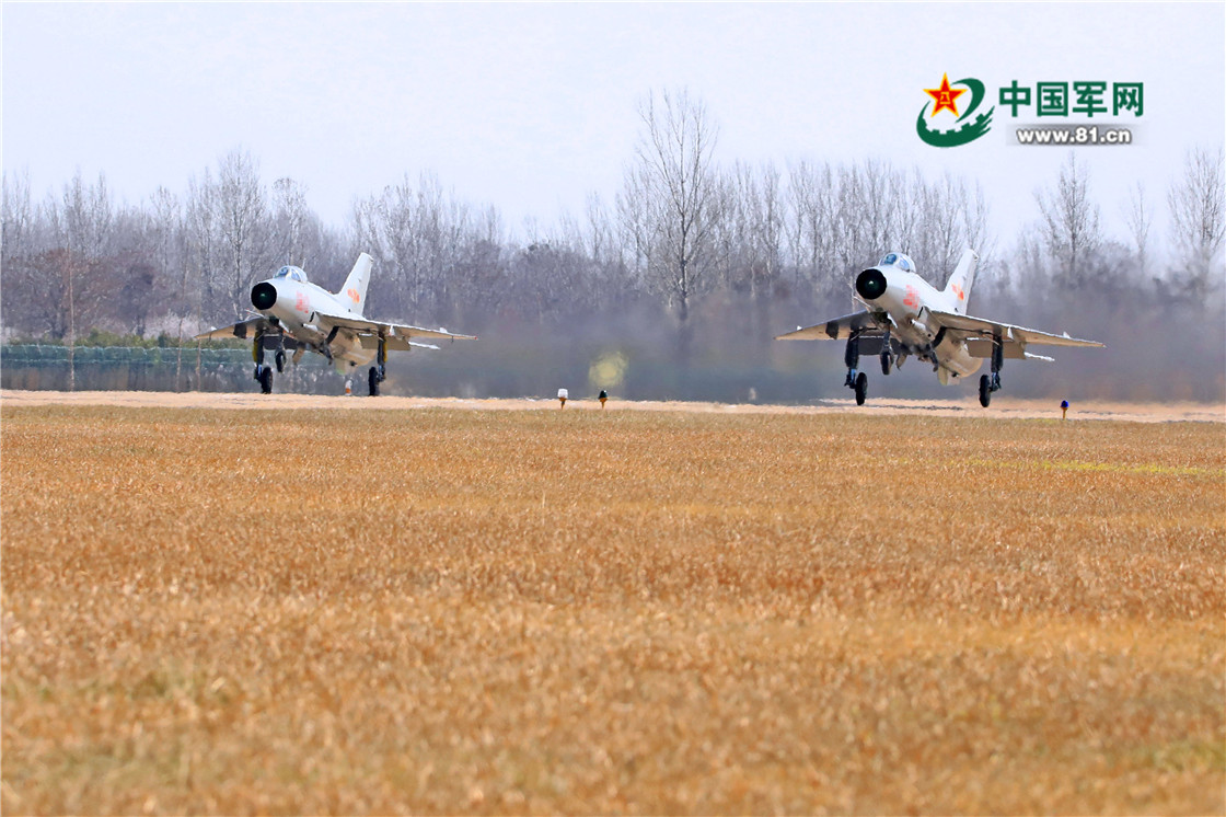 课目训练顺利完成,新飞行员驾驶战机实施着陆。崔保亮摄
