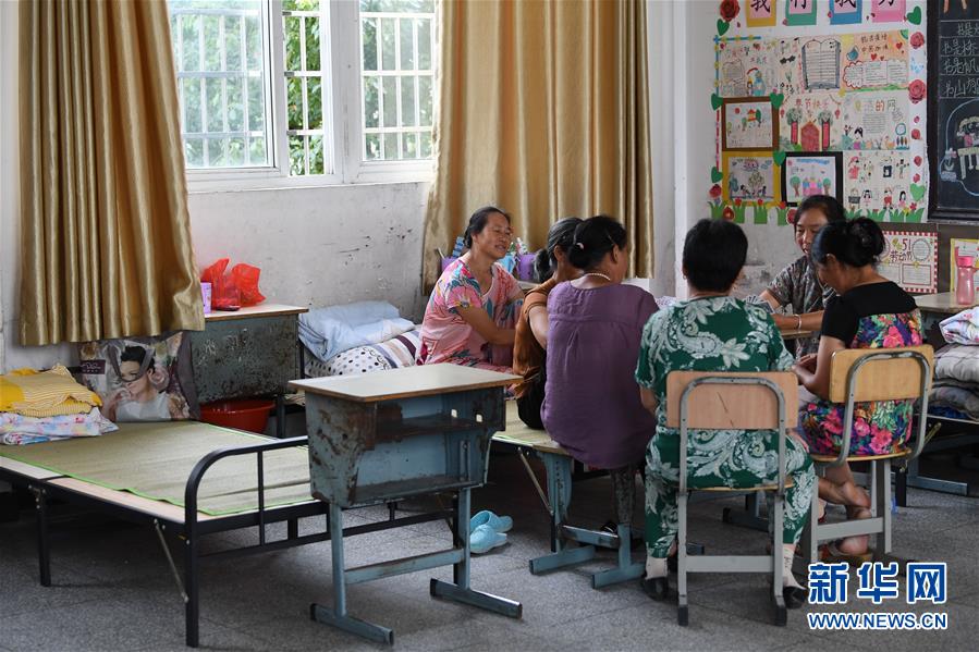 7月14日,在望江县第四小学安置点,村民在教室里休息。新华社记者 刘军喜 摄