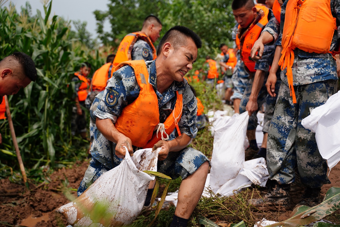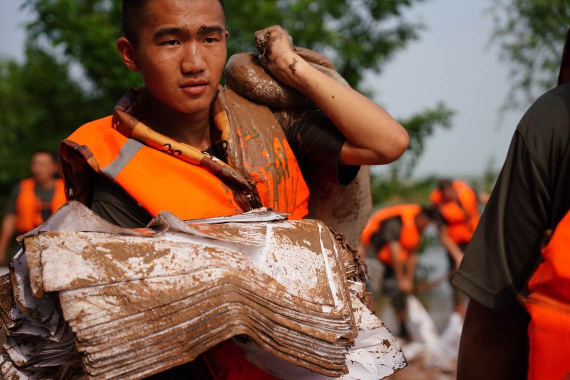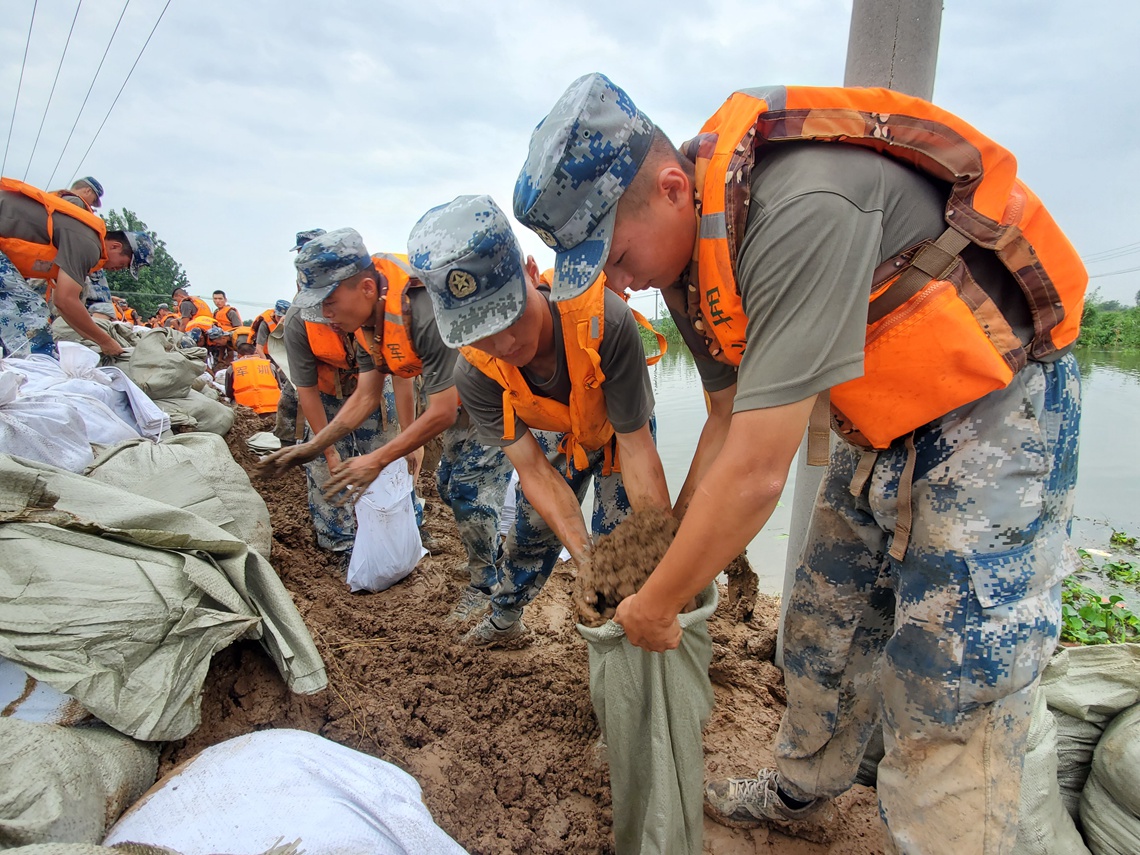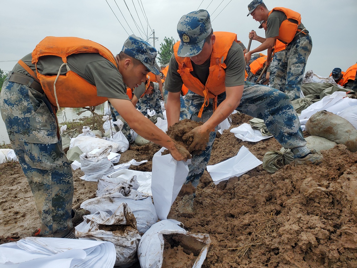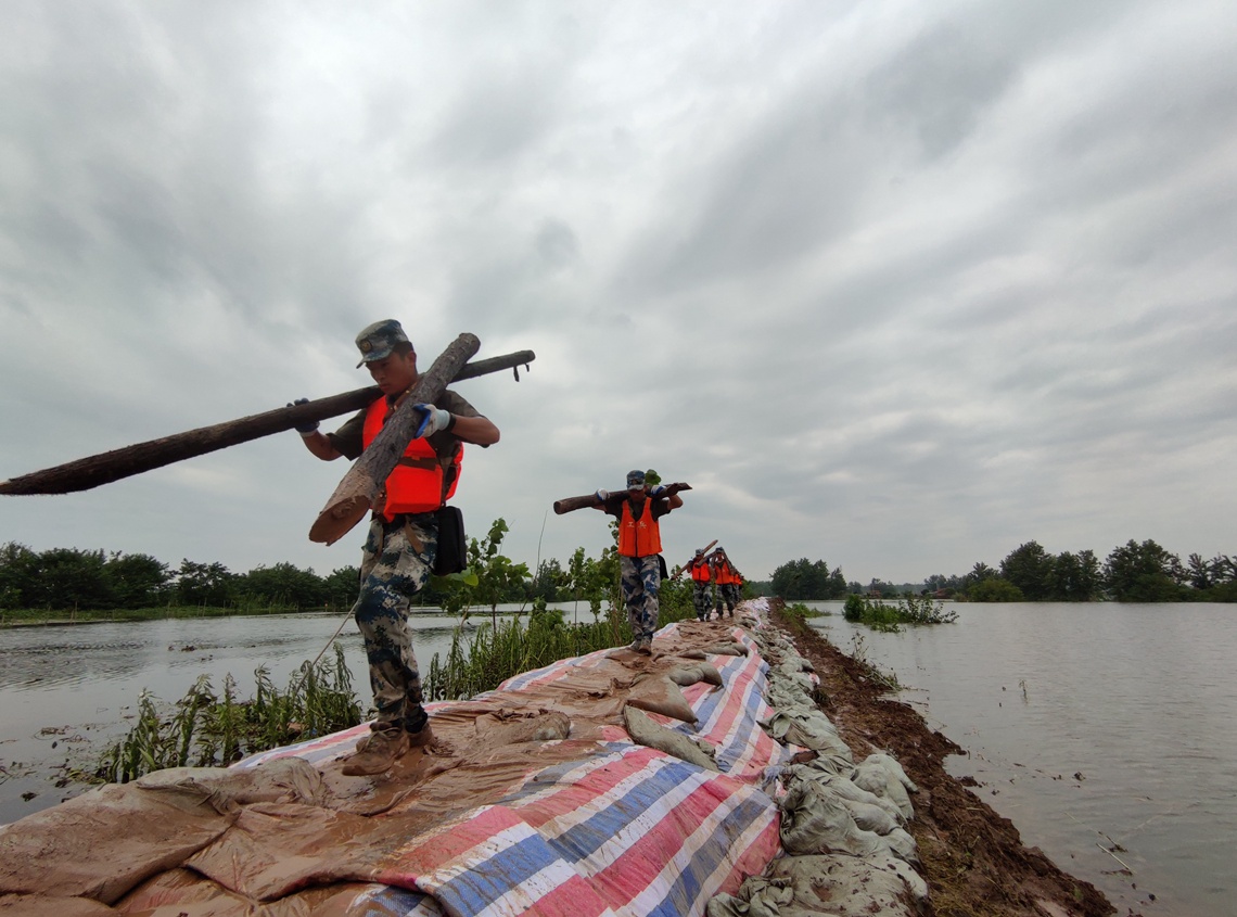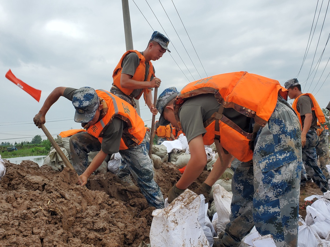 7月11日,湖北洪湖地区迎来新一轮强降雨。空降兵某旅500余名官兵分赴新滩镇沙套湖险段和洪湖围堤三八湖段。当日,该旅官兵在沙套湖险段,加固堤坝700余米,土方作业量约960立方米;在洪湖围堤三八湖段,加固堤坝约2公里,土方作业量约1230立方米。
