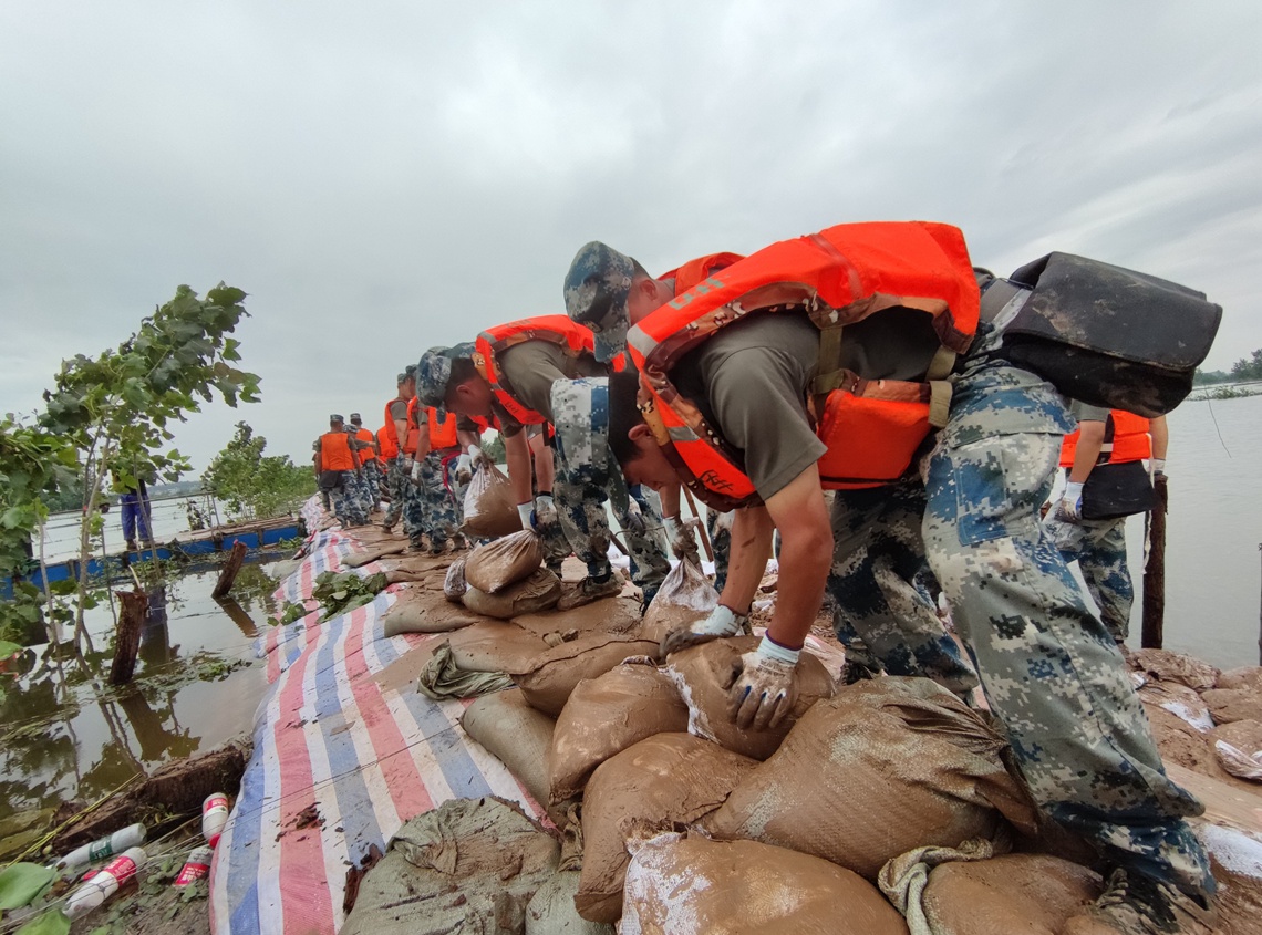 从训练场转战抢险一线 空降兵某旅500余名官兵固堤排险