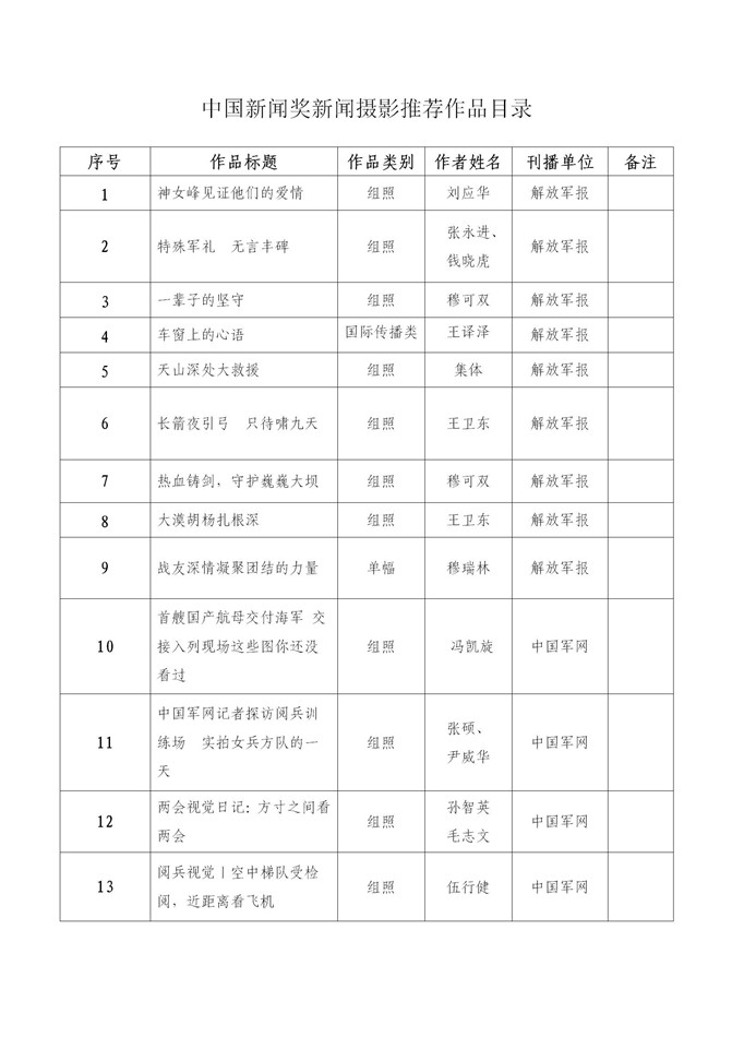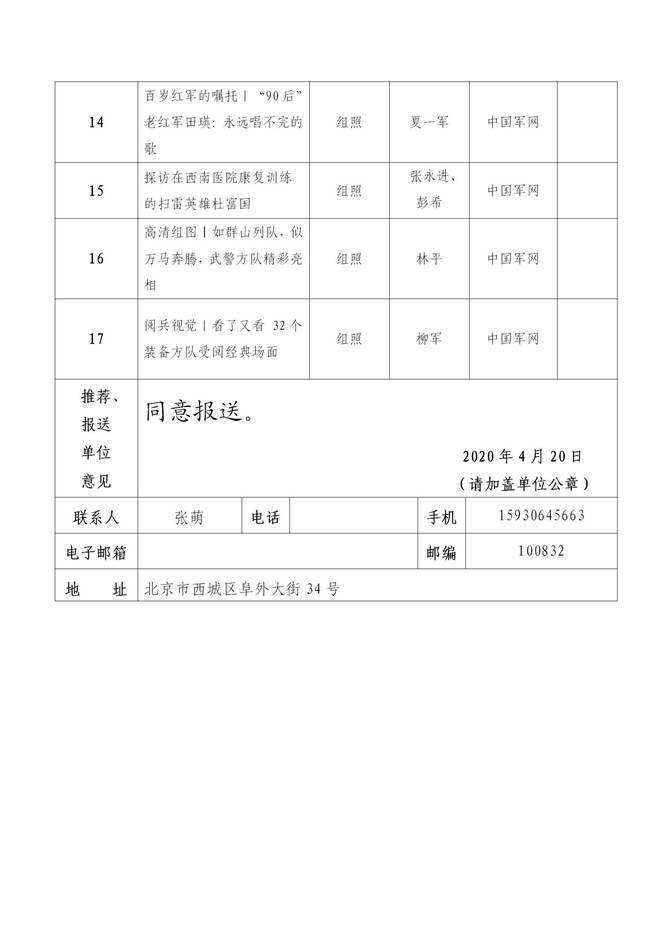 解放军新闻传播中心2020年中国新闻奖、长江韬奋奖推荐作品及个人公示