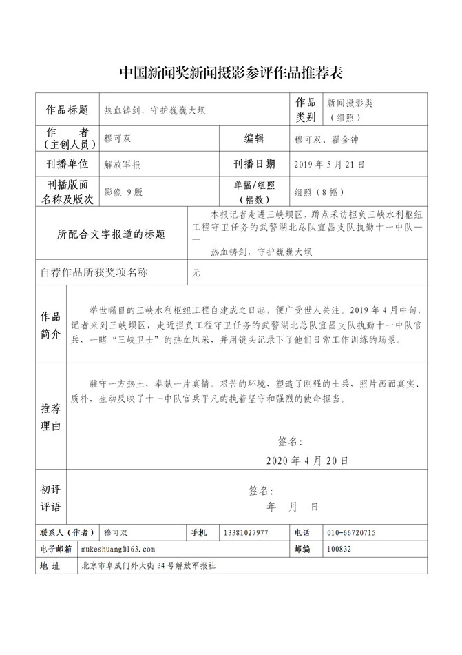 解放军新闻传播中心2020年中国新闻奖、长江韬奋奖推荐作品及个人公示