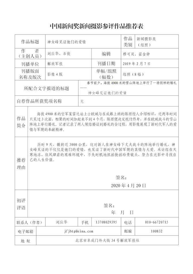 解放军新闻传播中心2020年中国新闻奖、长江韬奋奖推荐作品及个人公示