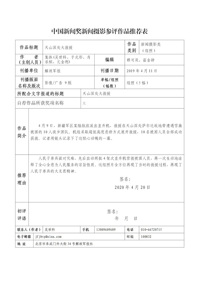 解放军新闻传播中心2020年中国新闻奖、长江韬奋奖推荐作品及个人公示