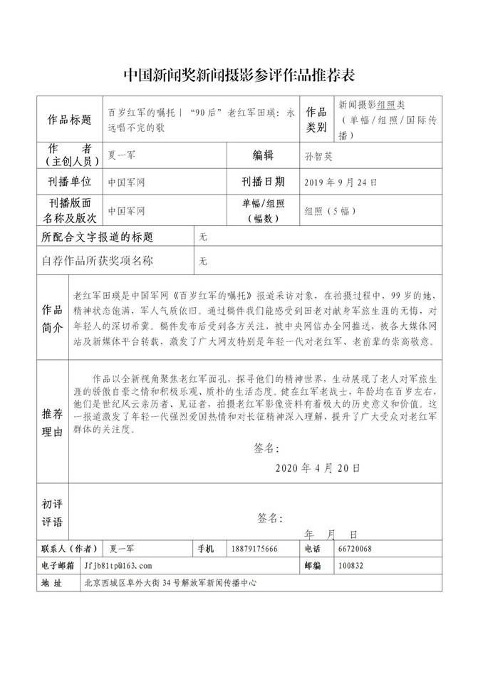 解放军新闻传播中心2020年中国新闻奖、长江韬奋奖推荐作品及个人公示