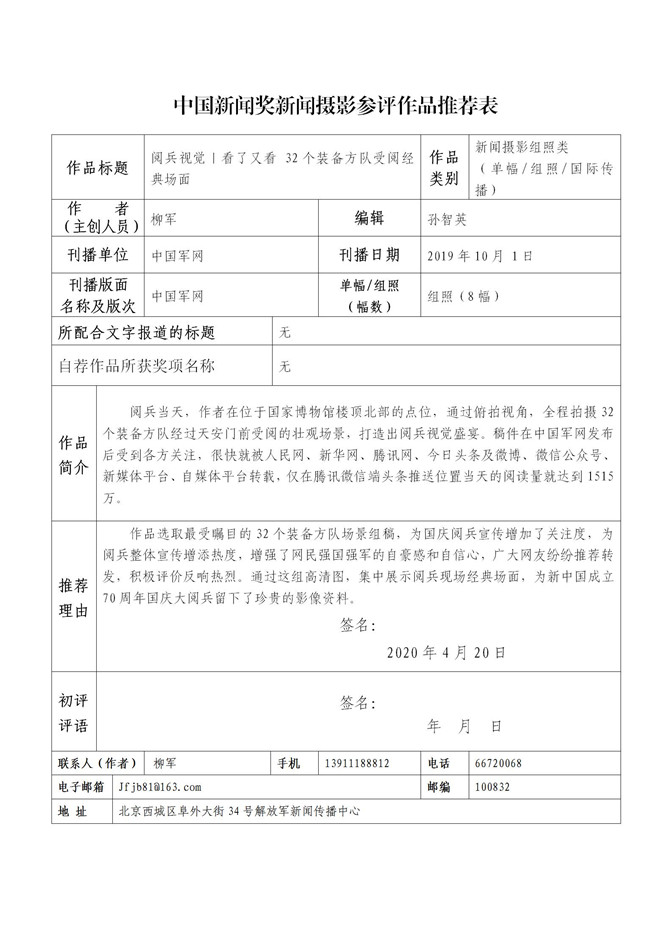 解放军新闻传播中心2020年中国新闻奖、长江韬奋奖推荐作品及个人公示