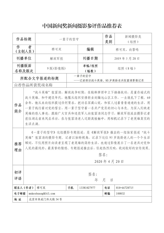 解放军新闻传播中心2020年中国新闻奖、长江韬奋奖推荐作品及个人公示