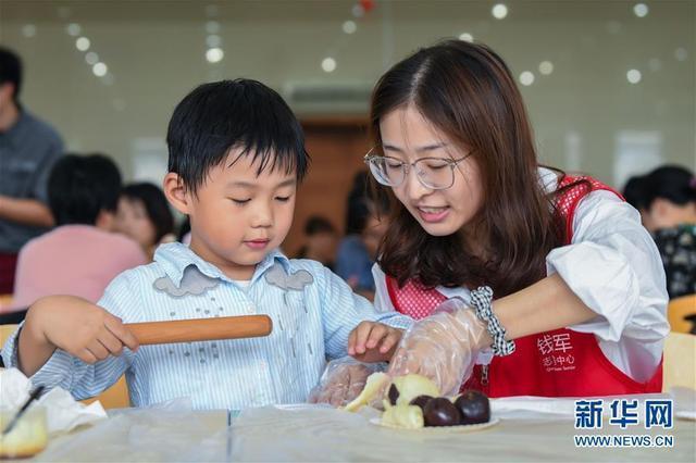 9月26日,志愿者指导小朋友制作月饼。 当日,浙江省慈溪市钱海军志愿服务中心的青年志愿者们与当地工会组织共同开展了一次自制手工月饼的亲子活动,邀请100多名职工子女,在志愿者的指导下制作苏式月饼和冰皮月饼,在快乐的气氛中感受传统民俗文化,迎接中秋节的到来。新华社记者 徐昱 摄