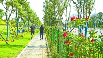 9月16日,记者现场看到,该园建有10万平方米疏林草地,种植耐践踏草坪,除了赏景,还适合市民晒太阳、放风筝、搭帐篷休闲。