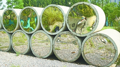 青山区戴家湖公园二期:快来玩水泥管哈哈镜