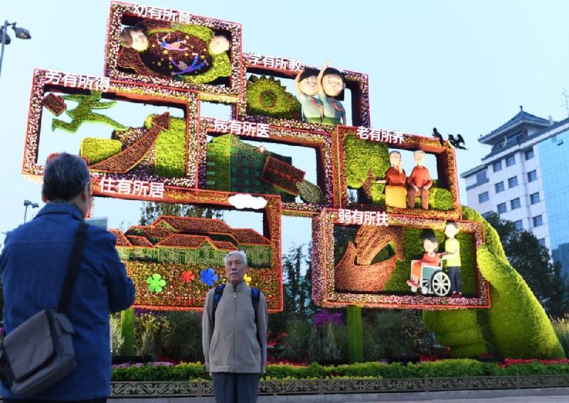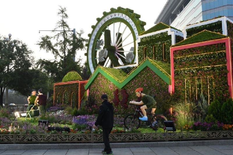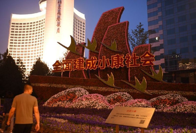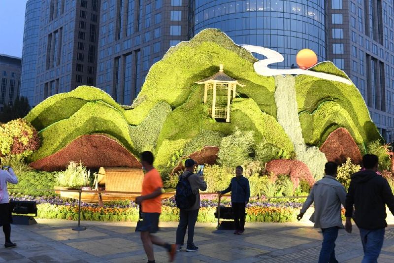 早晨5点半,北京日报客户端记者从东长安街建国门的第1处国庆花坛《全面小康》出发,经东单、西单两个花坛布置区,终点到达位于西长安街的复兴门第10处花坛《复兴伟业》。