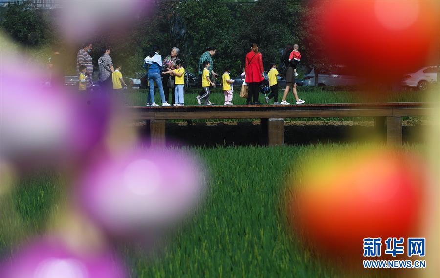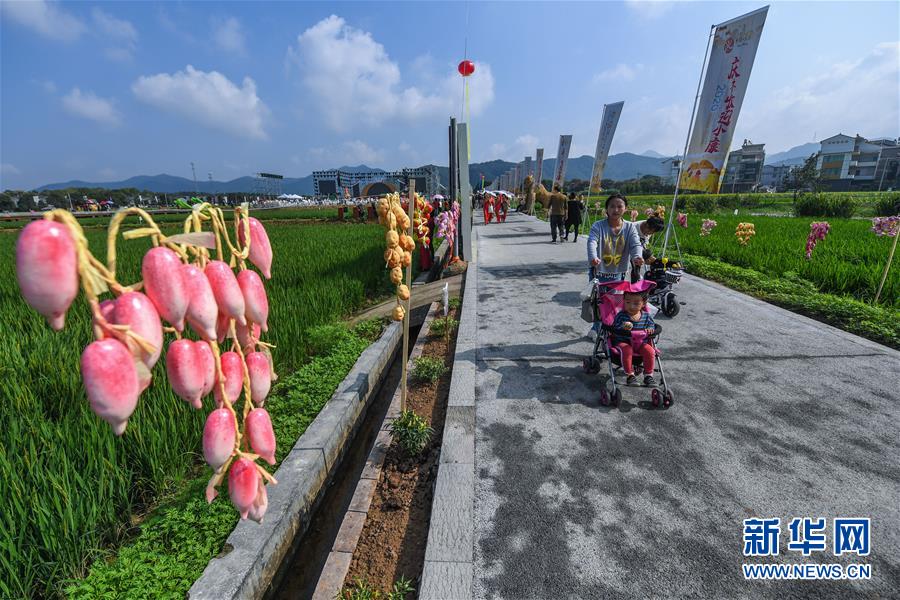 9月30日,百姓和游客在丰收节活动现场观赏乡村美景。 当日,浙江省义乌市佛堂镇龙溪村在万亩稻田中举办“庆丰收 迎国庆”丰收节活动。本次活动围绕“丰收有乐事”“丰收有看点”“丰收有味道”“丰收有逛头”四个板块开展。活动包括田园音乐会、农产品展销、美丽乡村广场舞大赛、村歌大赛、农田亲子趣味运动会、稻草人展示、原乡美食宴等内容。据介绍,丰收节已经成为当地展示乡村振兴成果、弘扬优秀农耕文化、拉动美丽乡村旅游和假期消费的重要节日。 新华社记者 徐昱 摄