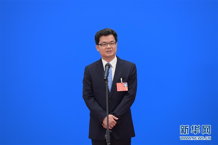 5月22日,第十三届全国人民代表大会第三次会议举行首场“代表通道”采访活动。这是全国人大代表肖胜方通过网络视频方式接受采访。 新华社记者 李贺 摄