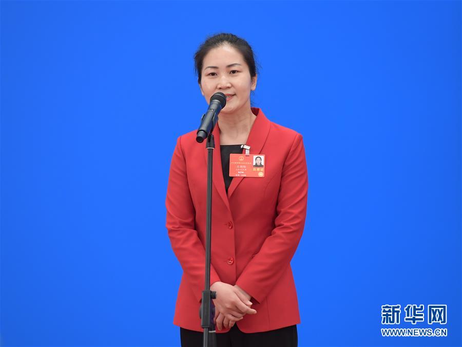 5月22日,第十三届全国人民代表大会第三次会议举行首场“代表通道”采访活动。这是全国人大代表朱国萍通过网络视频方式接受采访。 新华社记者 刘金海 摄