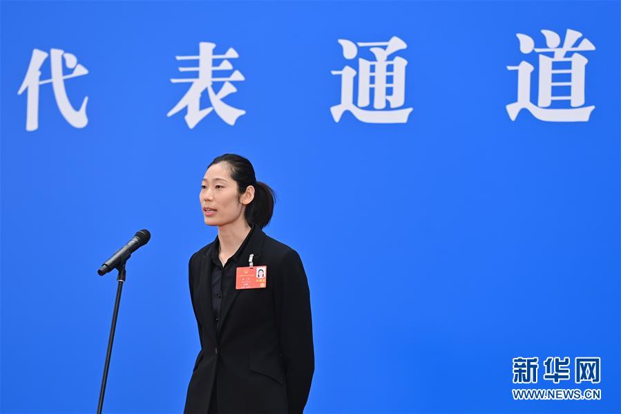 5月22日,第十三届全国人民代表大会第三次会议举行首场“代表通道”采访活动。这是全国人大代表朱婷通过网络视频方式接受采访。 新华社记者 刘金海 摄