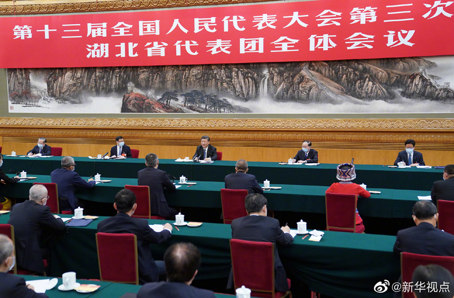 24日下午,中共中央总书记、国家主席、中央军委主席习近平参加十三届全国人大三次会议湖北代表团审议。